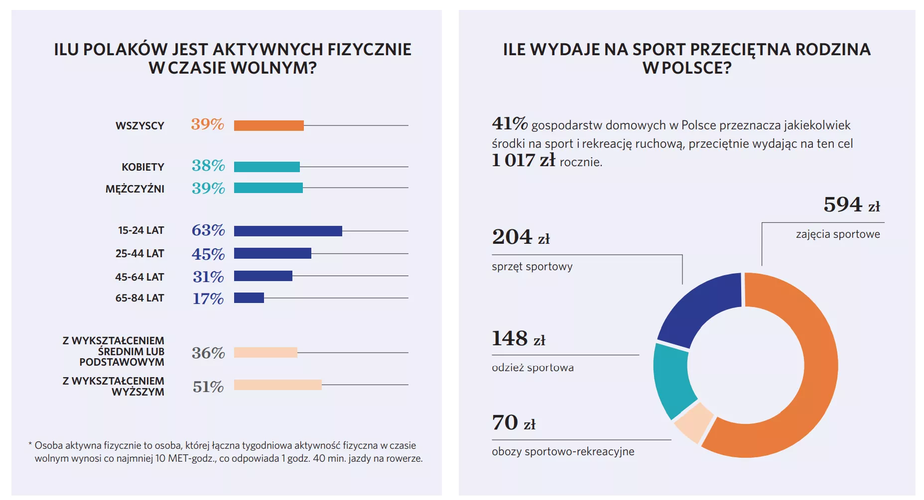 - 41 proc. gospodarstw domowych wydaje na sport, przeciętnie 1017 zł na rok