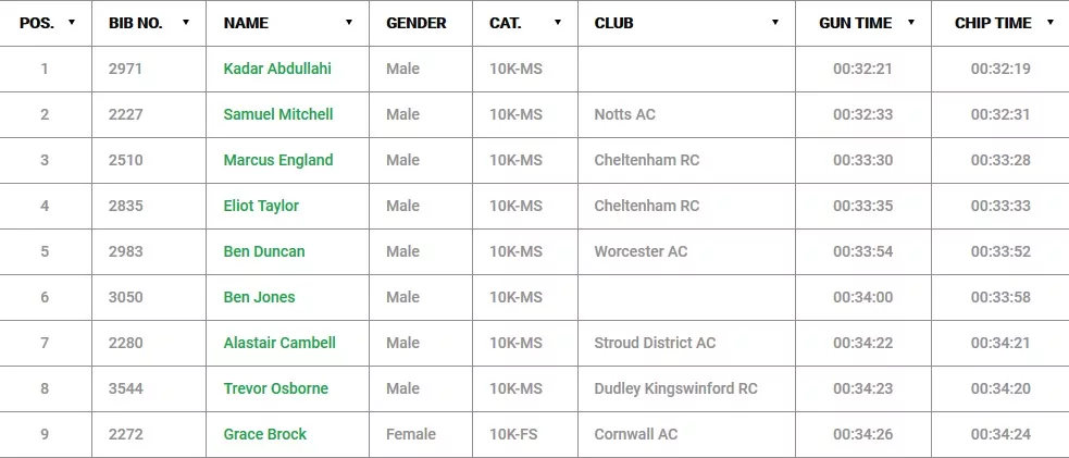 Młoda biegaczka uzyskała rewelacyjny wynik 34:26, zwyciężając rywalizację z seniorkami. Szybciej od juniorki trasę pokonało tylko ośmiu mężczyzn. Nad drugą na mecie Brytyjką Louise Small, która wygrała tegoroczny Bieg Oshee w Warszawie, Grace Brock miała aż 51 sekund przewagi.