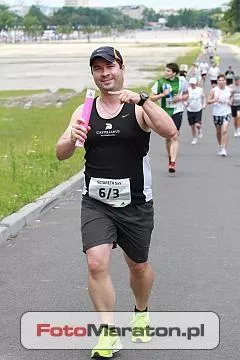 Następny byłem ja. Ciepło się zrobiło, głowa lekko mnie bolała, ale ruszyłem. Pierwszy kilometr dość lekko mi poszedł ? patrzę na tempo 4:55 na kilometr ? szybko jak na mnie. Może za szybko? Boję się, aby mi nie odcięło ?Powera? przed metą, dlatego zwalniam lekko.