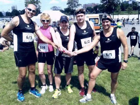 Wzniesienie wysysa ze mnie siły. Na górze widzę leżącego chłopaka a przy nim wolontariusze ? jednak podbieg zbiera swoje żniwo ? Radek miał rację. Lekko zwalniam, żeby uspokoić oddech. Zaczyna się zbieg. Lecę co sił w nogach i nagle po mojej prawej stronie mija mnie ?dziewczyna w różowym". Pędzi co sił w strefę zmian niesiona dopingiem swoich znajomych. Nie miałem szans i pokonuje mnie na ostatnich metrach a ja oddaję pałeczkę Agnieszce. Patrzę na zegarek i czas w obecnych warunkach 25:09 jest niezły.
