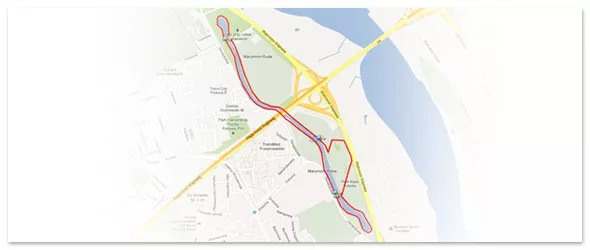 Trasa biegu ma dokładnie 5km (jedno okrążenie) co pomaga biegać określony dystans. Na trasie są umieszczone słupki z odległościami. Trasa przebiega dookoła malowniczego Parku Kępa Potocka. Obiegamy Łachę Potocką - starorzecze Wisły. Cały park jest oświetlony po zmroku, choć są miejsc gdzie jest dość ciemno (pod mostem Grota-Roweckiego). Praktycznie zawsze można spotkać trenujące osoby. Dookoła "kanałku" biegnie asfaltowa alejka ale można biec też wydeptaną ścieżką po trawie. W lato, szczególnie w weekendy trzeba uważać na liczne rodziny z dziećmi i rowerzystów. Park ma świetną infrastrukturę. Znajdują się tutaj liczne atrkcje dla dzieci: place zabaw, tor rowerowy. W okresie letnim działa też wypożyczalnia sprzętu wodnego oraz kawiarenka. Gdy zmęczenie dopadnie biegacza można usiąć w dwóch lokalach i napić się Kwasu Chlebowego. Park jest popularnym miejscem wśród okolicznych mieszkańców i miejscem organizowania kilku imprez biegowych. Ja staram się tam przybiegać regularnie więc do zobaczenia na ścieżce!