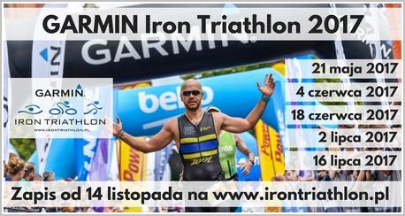 Zapisy na zawody z cyklu Garmin Iron Triathlon uruchomione zostaną 14 listopada 2016 r., o godzinie 12:00 na oficjalnej stronie internetowej zawodów www.irontriathlon.pl. Szczegółowe informacje znajdują się także na profilu cyklu na Facebooku.