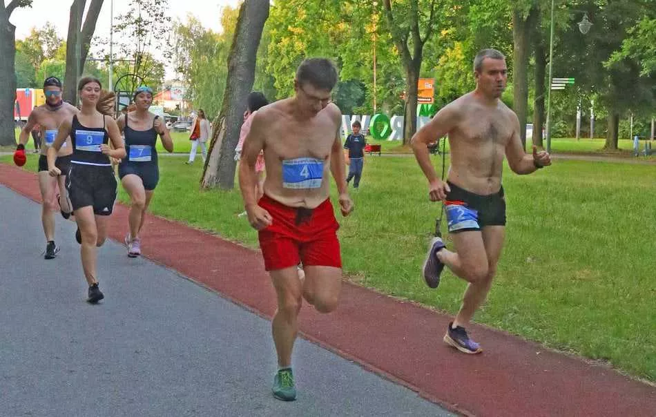 Wieczór, godzina 20. Noc Świętojańska na Zdrowiu – mnóstwo zabawy na 600 lat Łodzi. Bieg w kąpielówkach był jedną z kilkudziesięciu atrakcji weekendowych. Tak to ja jeszcze nie biegałem. Kąpielówki, buty i nic więcej. Miny spacerowiczów w parku byłi bezcenne. Jak na bezpłatny bieg dość atrakcyjny pakiet startowy od Aquaparku FALA. No i bardzo solidne nagrody dla najlepszych.