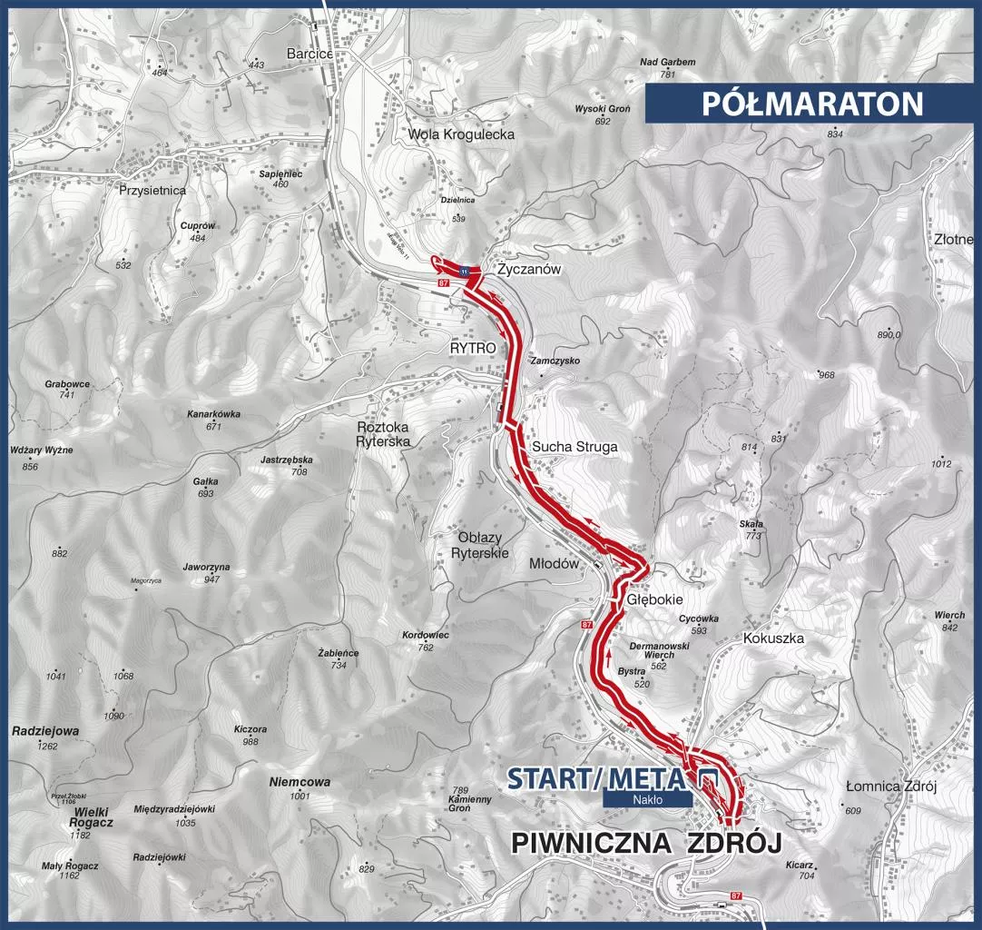 Uczestnicy rozpoczną 21 kilometrową trasę o godz. 9 w Piwnicznej, na Nakle, biec będą przez Głębokie, Młodów, Suchą Strugę i Rytro, a następnie z powrotem do Piwnicznej, skąd wystartowali. Trasa zaopatrzona jest w punkty serwisowe, w których zawodnicy będą mieli okazję wypocząć, nawodnić się, by biec dalej!