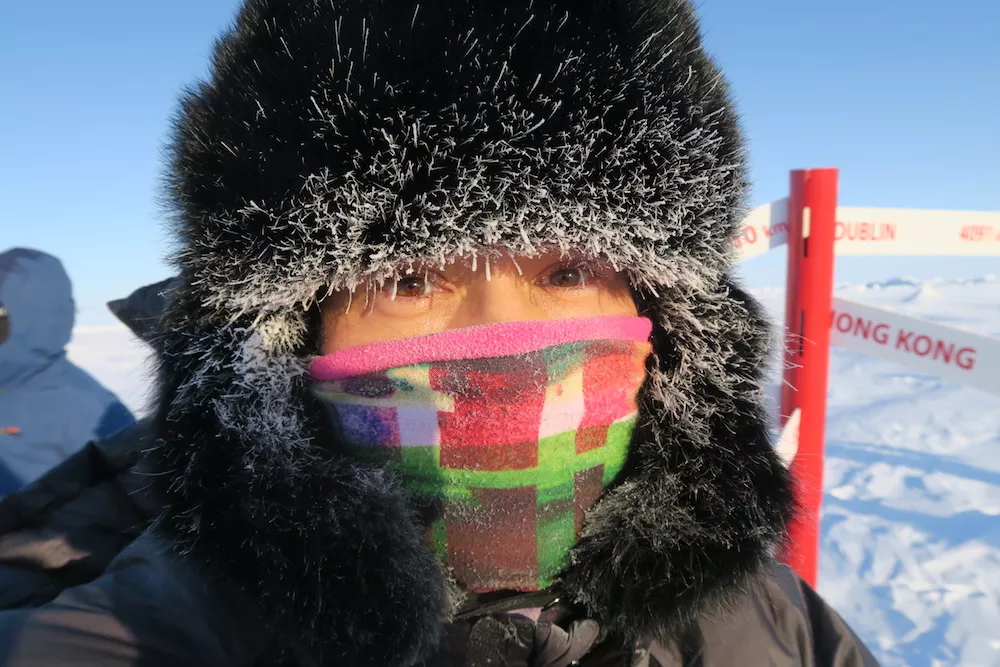 Nie miałam odmrożeń, w czym pomogło doświadczenie z biegu na Antarktydzie. Dobrze dopasowałam sprzęt – rękawiczki były odpowiednie, miałam dwie pary skarpet wełnianych. Nie mogłam nałożyć kompresyjnych, bo byłoby zbyt zimno. Mój mąż miał lżejsze skarpety i przyznał, że trochę zmarzł pod koniec.