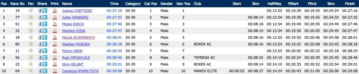 W Durbanie Wanders zajął drugie miejsce, tuż za Joshua Cheptegei. Wynikiem 27:14 Ugandyjczyk ustanowił nowy rekord trasy. Wanders odparł skutecznie atak kilku mocnych Afrykańczyków – Mosesa Koecha (27:44) czy Stephena Kissy (27:46). Aż 17 zawodników złamało barierę 30 minut!