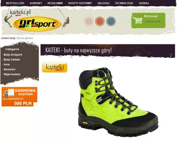 Ofertę sklepu stanowi też obuwie do pracy, w której ochrona stopy musi być zapewniona na najwyższym poziomie. Wybierać można spośród marek Kaiteki oraz Grisport.