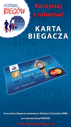 Karta Biegacza jest jednocześnie kartą prepaid. Powstała we współpracy z Bankiem Zachodnim WBK. Szczegóły na: http://prepaid.bzwbk.pl/