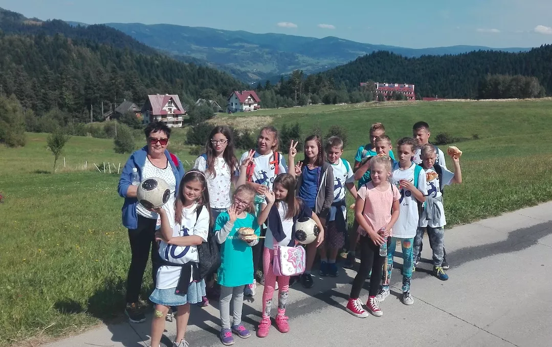 Grupa kibicowania z Zespołu Szkolno-Przedszkolnego w Kadczy (powyżej)