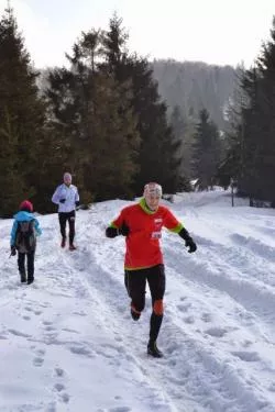 Bieg na Błatnią (917m n.p.m.) wiedzie szlakami turystycznymi, które nadal są mocno zaśnieżone. Do tego śnieg jest na tyle mokry, że wbieganie jest nie lada wyzwaniem dla każdego z uczestników. Trasa oznaczona biało-czerwoną taśmą.