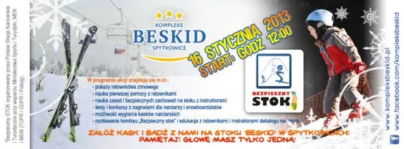 Akcja odbędzie się w najbliższą środę 16 stycznia 2013 na stacji narciarskiej „Beskid” w Spytkowicach. Jest to jedna z imprez z cyklu „Wesołe ferie z Kompleksem Beskid”, jakie przez ferie zimowe będą gościły na terenie całego Kompleksu. Rozpoczęcie Akcji Bezpieczny Stok planowane jest na godz 12:00.
