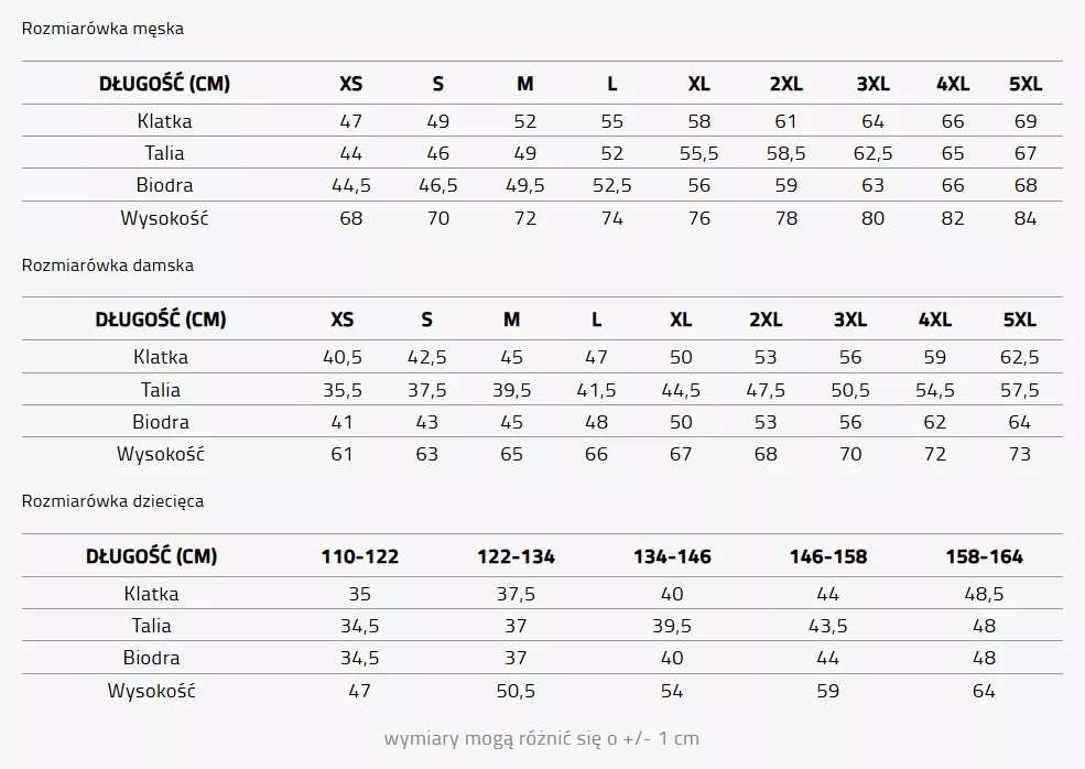 Tabela rozmiarów: