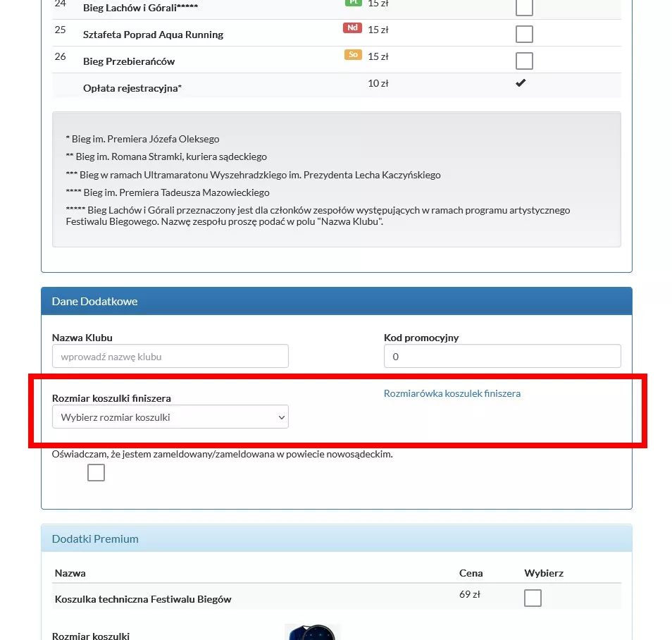 Ważne, aby podać wszystkie szczegóły przy rejestracji. Rozmiar możemy wybrać do 6 sierpnia. Nowo rejestrujący podają go w formularzu zgłoszeniowym