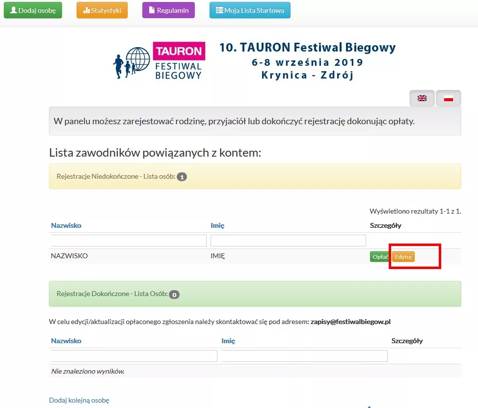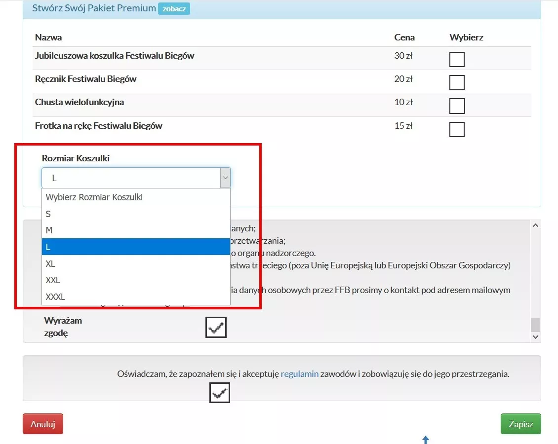 Osoby, które nie wniosły jeszcze opłaty startowej, mogą skorygować rozmiar koszulki bezpośrednio w Profilu Uczestnika 10. TAURON Festiwalu Biegowego.