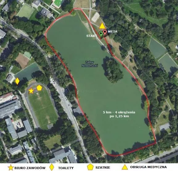 Początkowo w planach mieliśmy poprowadzić bieg ze stadionu ulicą Bulwarową i wokół Zalewu, jednak nie zdążyliśmy z formalnościami. Ostatecznie trasę biegu utworzą 4 okrążenia wokół pięknego zalewu nowohuckiego, gdzie wytyczone są rzeczone ścieżki biegowe. W przyszłości, bo na pewno nie będzie to nasza ostatnia edycja, chcielibyśmy zorganizować bieg, który poprowadzi też ulicami Nowej Huty.