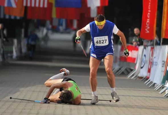 Andrzej Michalski, maszerujący po złoto krok w krok z Marcinem Michalcem, nie zawahał się ani przez moment by pomóc rywalowi podnieść się z deptaka po upadku.
