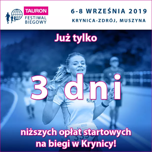 10. TAURON Festiwal Biegowy potrwa do 8 września. Zapisy trwają – TUTAJ. Do końca maja obowiązuje niższe wpisowe. Do Krynickiej Mili jest to 15 zł.