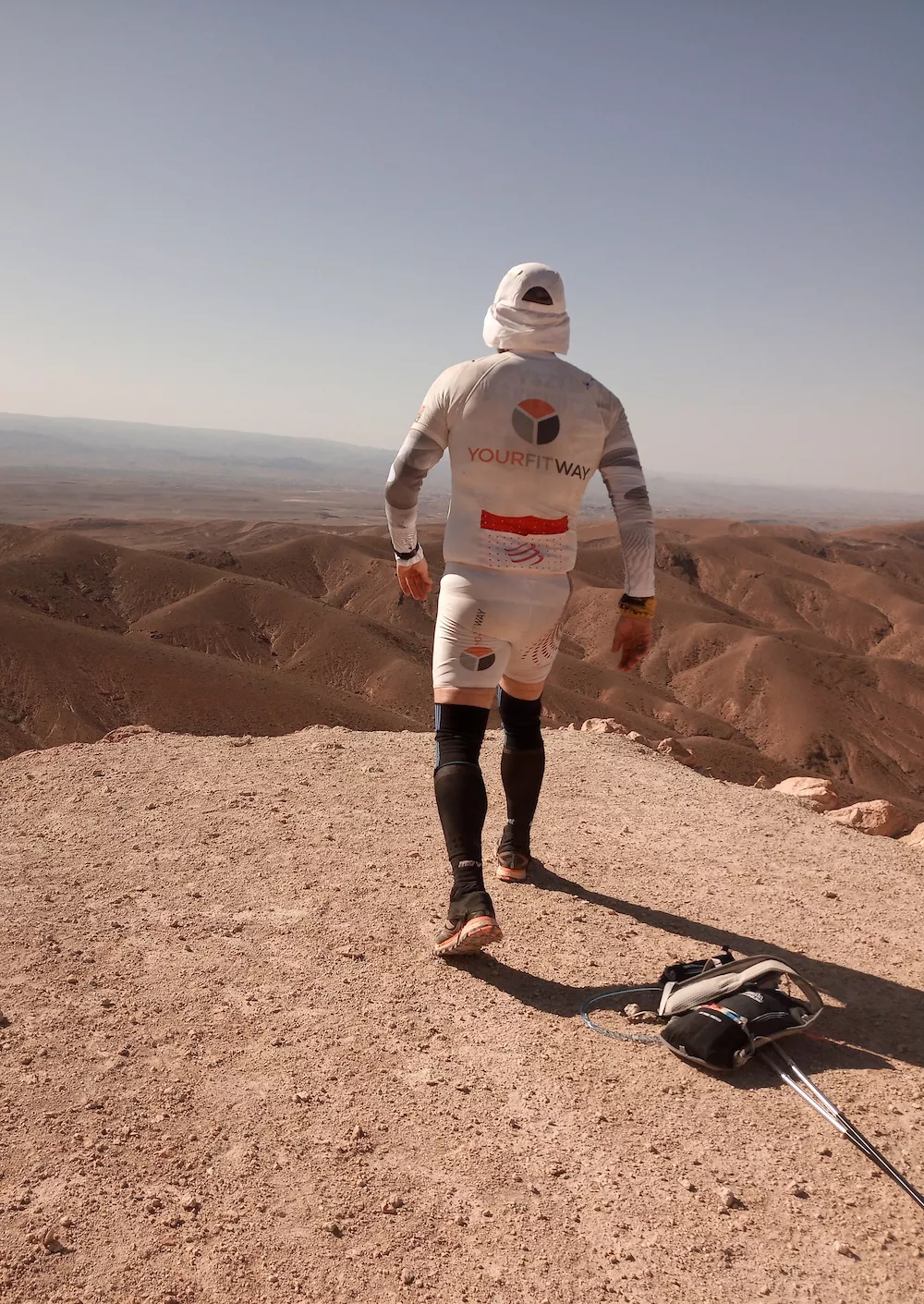 Moją ulubioną formą biegów nadal są biegi z przeszkodami, najczęściej Runmageddon i jego różne formuły. Zrobiłem dwa razy weterana (rekrut 6 km + 30 przeszkód, classic 12 km + 50 przeszkód i hardcore 21 km i 70 przeszkód). Wiedziałem, że jest coś takiego jak Sahara, ale nie sądziłem, że podołam, bo to w końcu 120 km w ekstremalnych warunkach. Stwierdziłem, że zaufam losowi i tak pojawił się pomysł na zrzutkę – uzbieram, to pojadę. Wiara mojej żony i ponad setki ludzi, którzy wsparli mnie pieniędzmi i dobrym słowem sprawiła, że znalazłem się wśród 90 osób, które podjęły to wyzwanie.