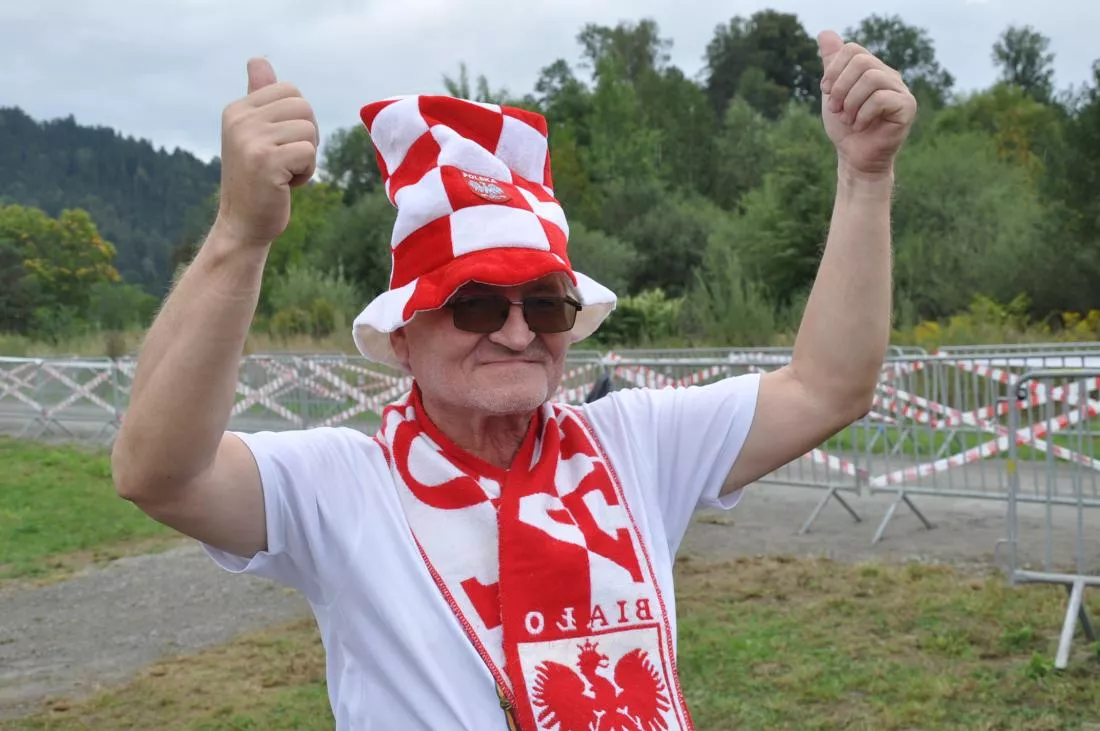 Przed startem rozmawiamy z Krzysztofem Pigułą z Łodzi. Jego barwny strój (oczywiście w kolorze biało-czerwony) nie mógł ujść naszej uwadze. Pan Krzysztof jest kibicem przede wszystkim reprezentacji Polski w różnych dyscyplinach sportowych.