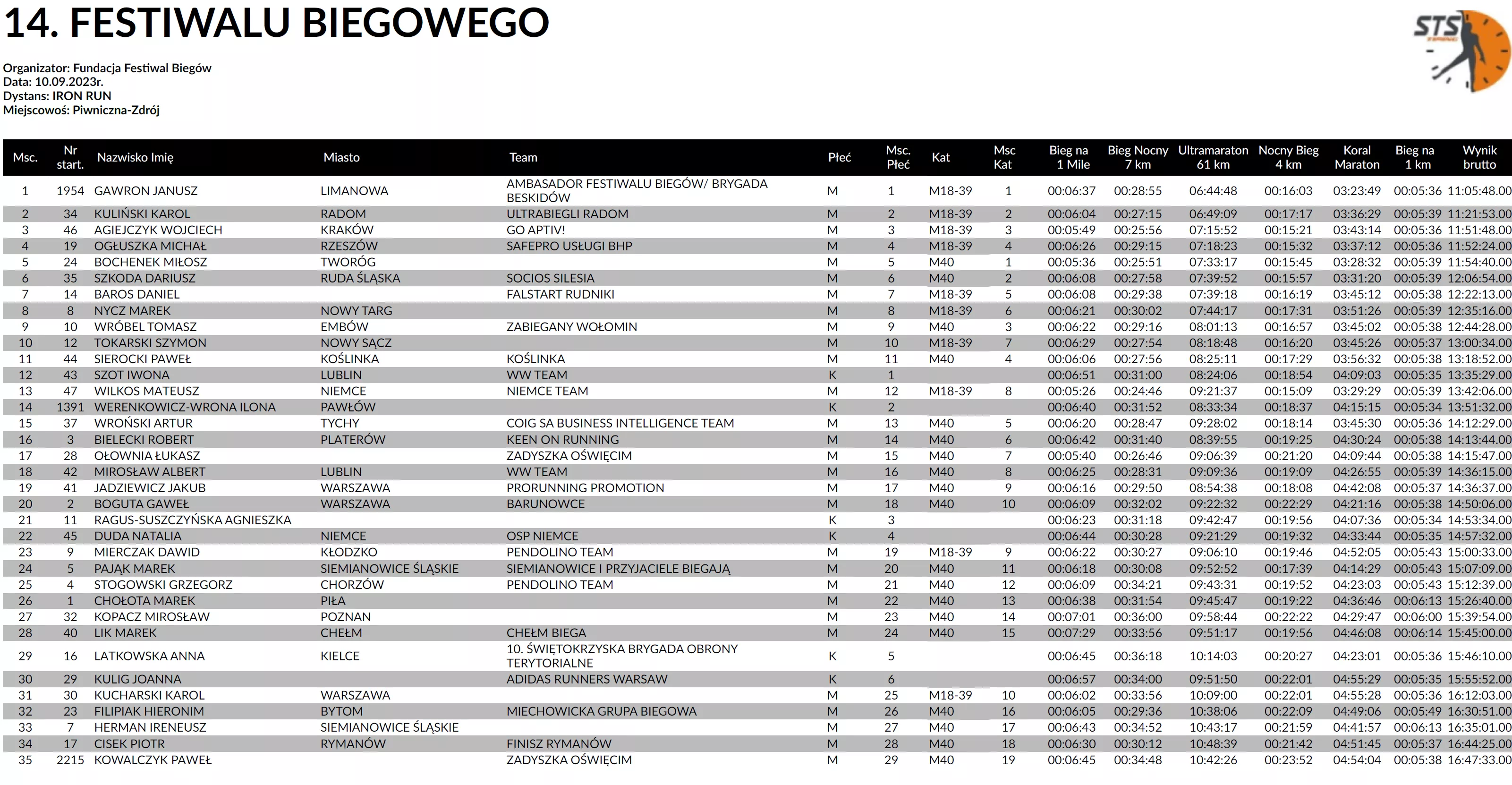 Jak wyglądają końcowe wyniki? Kto okazał się najlepszy? Wśród mężczyzn w końcowej klasyfikacji na pierwszym miejscu znalazł się Janusz Gawron, drugi był Karol Kuliński, a trzeci Wojciech Agiejczyk. U kobiet triumfowała Iwona Szot, przed Agnieszką Ołownią oraz Iloną Werenkowicz-Wroną.