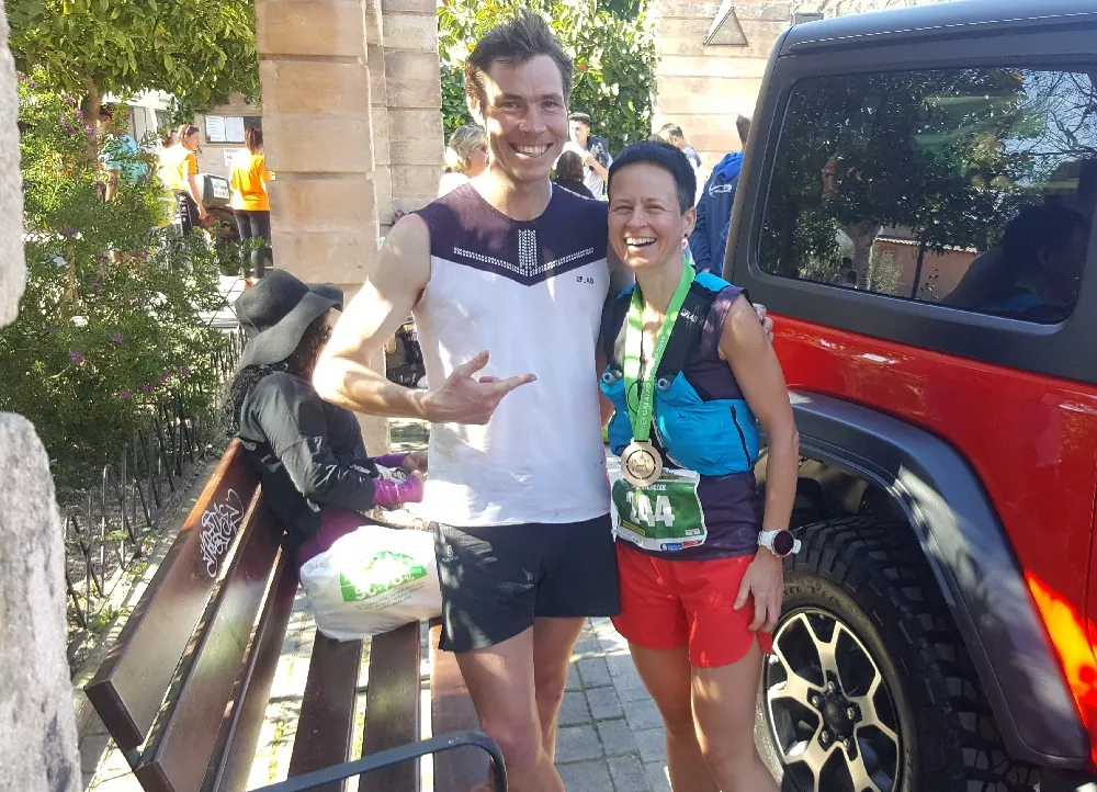 – To lokalny bieg, bez jakiejś wielkiej obsady, choć wystartowało kilkoro topowych Szkotów, którzy też chyba szukali słońca i od kilku dni tutaj trenują – mówi Magda. – Tom Owens (na zdjęciu poniżej z Magdaleną - red.) wygrał półmaraton, Donald Campbell maraton, a jego żona Rachael, która zwyciężyła rok temu, była trzecia – opowiada polska biegaczka. – Wyguglowaliśmy sobie te zawody, a że organizatorzy byli bardzo mili i nas zaprosili, postanowiłam wystartować, lepsze to niż treningowe bieganie samemu – tłumaczy.