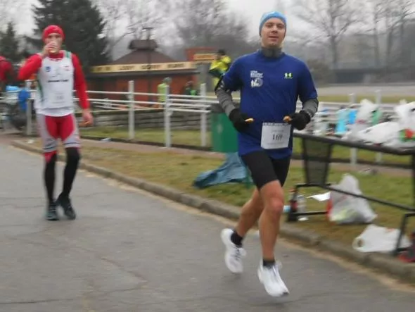 Moim celem było pokonanie pełnego dystansu. I to po nocy sylwestrowej. Bieg rozpocząłem więc spokojnym tempem, choć adrenalina pchała do przodu. Pierwszą połowę maratonu pokonałem gawędząc mile z kolegą z klubu biegowego Mirkiem Bortelem. Czas po połówce to 1:50 – było nieźle.