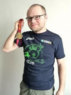 W związku z wyborem papieża, trasa maratonu została nieznaczenie zmodyfikowana i omijała Plac św. Piotra. Na trasie sporo kibiców dopingowało biegnących. Zwiedzając Rzym, dotarłem do półmetka maratonu. Na trasie rozluźniło się już, więc stwierdziłem, że warto przyspieszyć trochę. Patrząc na zegarek pomyślałem, że fajnie by było ukończyć bieg z wynikiem 3:33:33. I prawie się udało. Niestety coś źle obliczyłem, i czas ten ukazał się przede mną na wielkim zegarze, kiedy byłem na długiej, prostej Via dei Fori Imperiali, kilkaset metrów przed metą. Cóż, nie dało się już nic zrobić i ostatecznie na metę wbiegłem z czasem brutto 3:34:20 (czas rzeczywisty: 3:33:07). Na mojej szyi zawisł medal, który będzie piękną pamiątką tego wspaniałego maratonu. Warto przy okazji dodać kilka słów o samym medalu. Otóż organizatorzy Maratonu Rzymskiego corocznie ogłaszają konkurs na jego projekt. Specjalna komisja wybiera potem najlepszy. Jest on więc sam w sobie niepowtarzalnym dziełem sztuki.