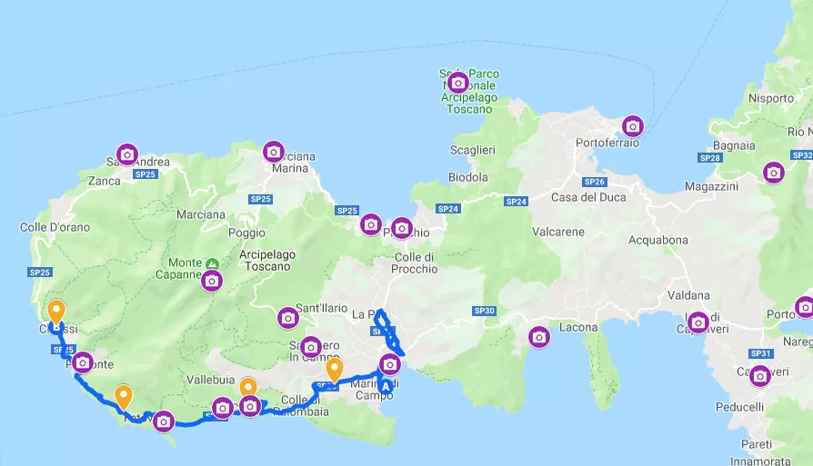 Podróż samochodem zajmie niemal dobę. Warto skorzystać z linii lotniczych i wylądować na przykład w Pizie, Bolonii lub Florencji a dalej podróżować komunikacją publiczną lub, jeszcze wygodniej, wynajętym samochodem. Na wyspę można się dostać promem z Piombino, który przypływa do stolicy wyspy Portoferrario.
