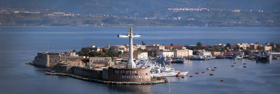 Mesyna (Messina) to wrota Sycylii, pierwsze miasto, które ogląda się, schodząc z promu przypływającego z kontynentalnej Italii. Choć od lat trwają dyskusje o budowie mostu łączącego wyspę z Kalabrią, jedyna droga to nadal przeprawa przed Cieśninę Mesyńską. Interesujące jest, że można ją przepłynąć… pociągiem. Wagony w ostatnim porcie na lądzie są rozczepiane i wtaczane na prom z pasażerami w środku. Po drugiej stronie, już na Sycylii, są ponownie łączone w pociąg.