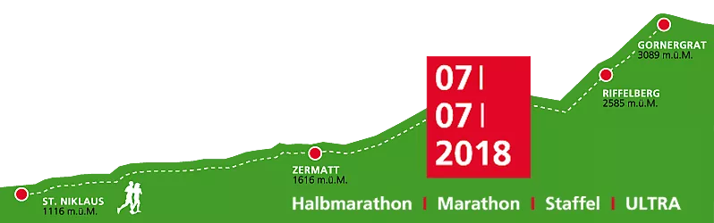 Trasa wiedzie z najgłębszej szwajcarskiej doliny, z miejscowości st. Niklaus do stacji narciarskiej Riffelberg na grzebiecie Gornergrat. To daje ponad 1800 metrów przewyższenia na dystansie 42 km, w większości rozłożonego w drugiej części dystansu. Obrazuje to dwuetapowa sztafeta maratońska, w której pierwszy biegacz ma do podbiegnięcia 600 metrów a drugi 1300. Ten drugi odcinek można pokonać także oddzielnie, zapisując się na półmaraton. Równolegle odbywa się także ultramaraton. Mierzy on wprawdzie „tylko” 45,6 km, ale ma prawie 2000 metrów przewyższenia. Meta znajduje się na szczycie Gornergrat.