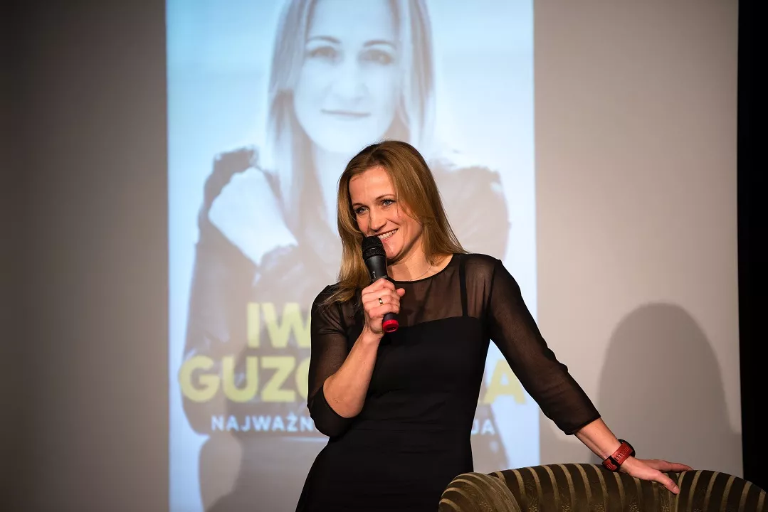 IWONA GUZOWSKA, wielokrotna mistrzyni świata i Europy w kick-boxingu i boksie, pierwsza polska pięściarka zawodowa, po zakończeniu profesjonalnej kariery sportowej – biegaczka i triathlonistka, uprawia też jeździectwo. Zdobyła najwyższy szczyt Europy Mont-Blanc, przebiegła 6 maratonów (rekord życiowy 3:30:01, Poznań 2015), ukończyła 16 zawodów triathlonowych. Marzy o bieganiu górskich ultramaratonów, a na debiut biegowy w górach wybiera się do Krynicy, na 9. Festiwal Biegowy w 2018 roku.