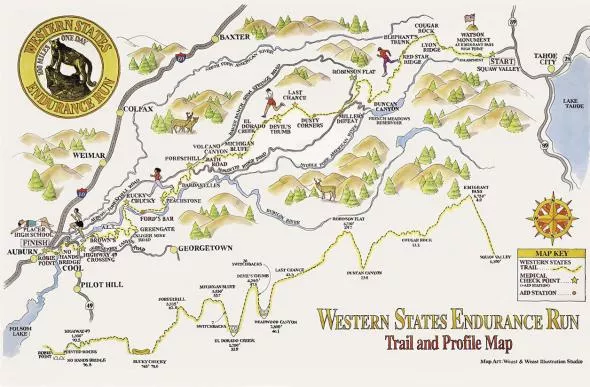 Trasa długości 100 mil, czyli około 161 km, przebiega w stanie Kalifornia, prowadzi ze Squaw Valley (miasta zimowych igrzysk olimpijskich w 1960 r.) do Auburn. Biegacze mają do pokonania 5500 m pod górę i 7000 m w dół, ale trasa jest niezwykle szybka, w zdecydowanej większości do przebiegnięcia. Świadczą o tym wyniki, nawet poniżej 15 godzin.
