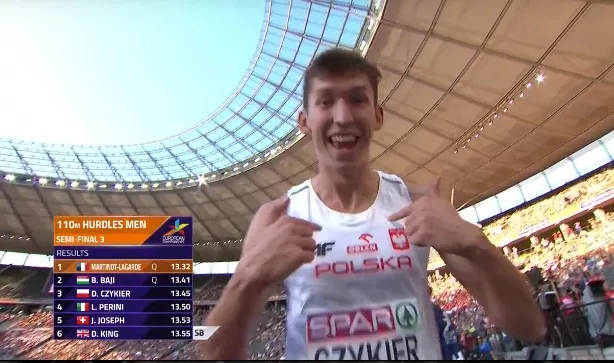 Lepiej poradził sobie Damian Czykier. Syn byłego piłkarza Legii Warszawa miał równie trudnych rywali co Artur Noga – Francuz Pascal Marinot-Lagarde to stały bywalec podiów HMŚ, Węgier Balazs Baji to brązowy medalista MŚ z 2017 r. Polak pobiegł mocno od startu, ustępując na mecie tylko gwiazdom. Dzięki wynikowi 13.45 Damian znalazł się wśród dwójki „lucky looser’ów” i po raz drugi w karierze znalazł się w finale ME.