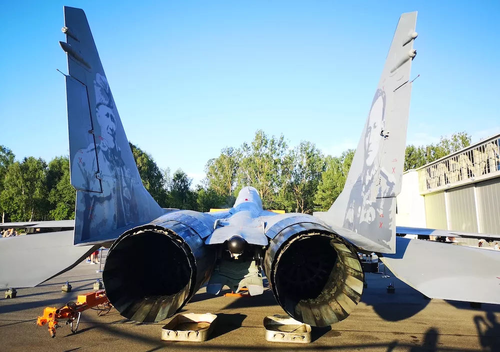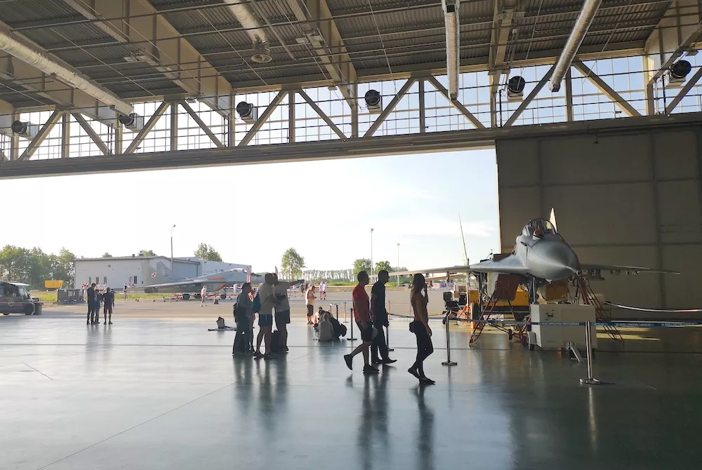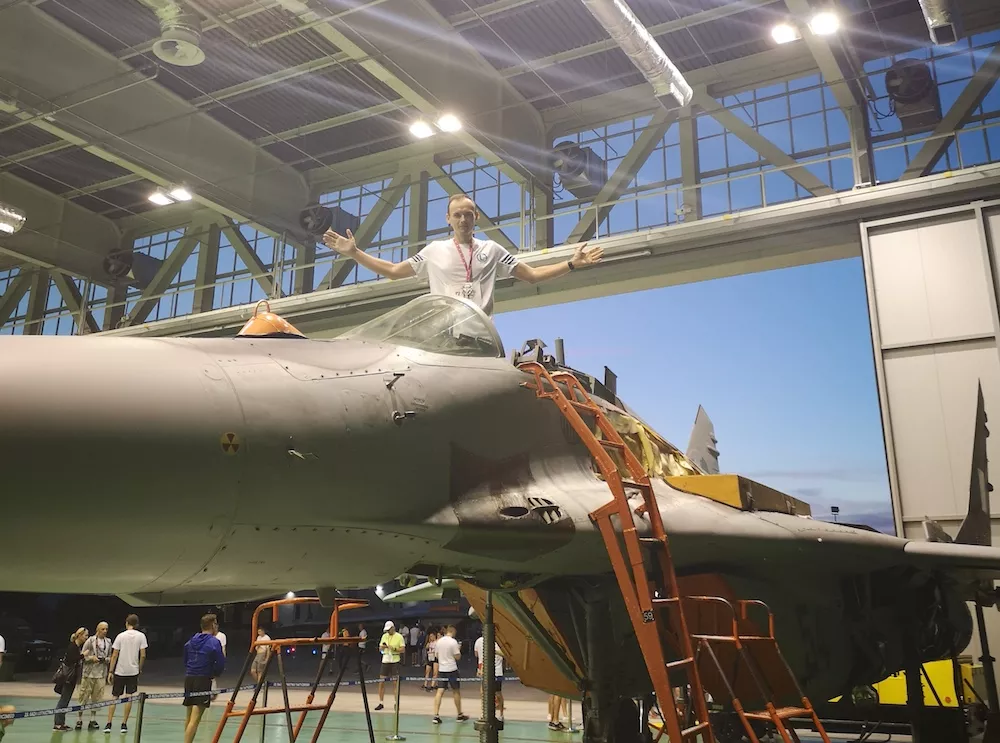 Brzmi świetnie, a w rzeczywistości było jeszcze lepiej, bo znalazłem się wśród samolotów MiG 29 ustawionych wewnątrz i przed hangarem.