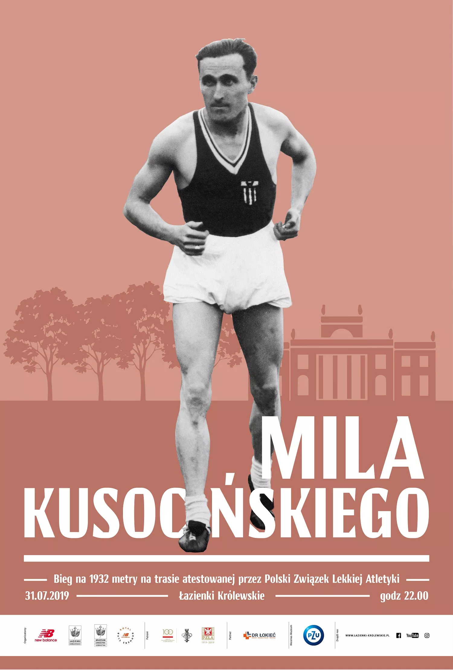 Łazienki Królewskie, w których mistrz był zatrudniony, mieszkał i trenował, ugoszczą biegaczy na atestowanej przez Polski Związek Lekkiej Atletyki, specjalnie wyświetlonej trasie. Dystans: Mila Kusocińskiego.
