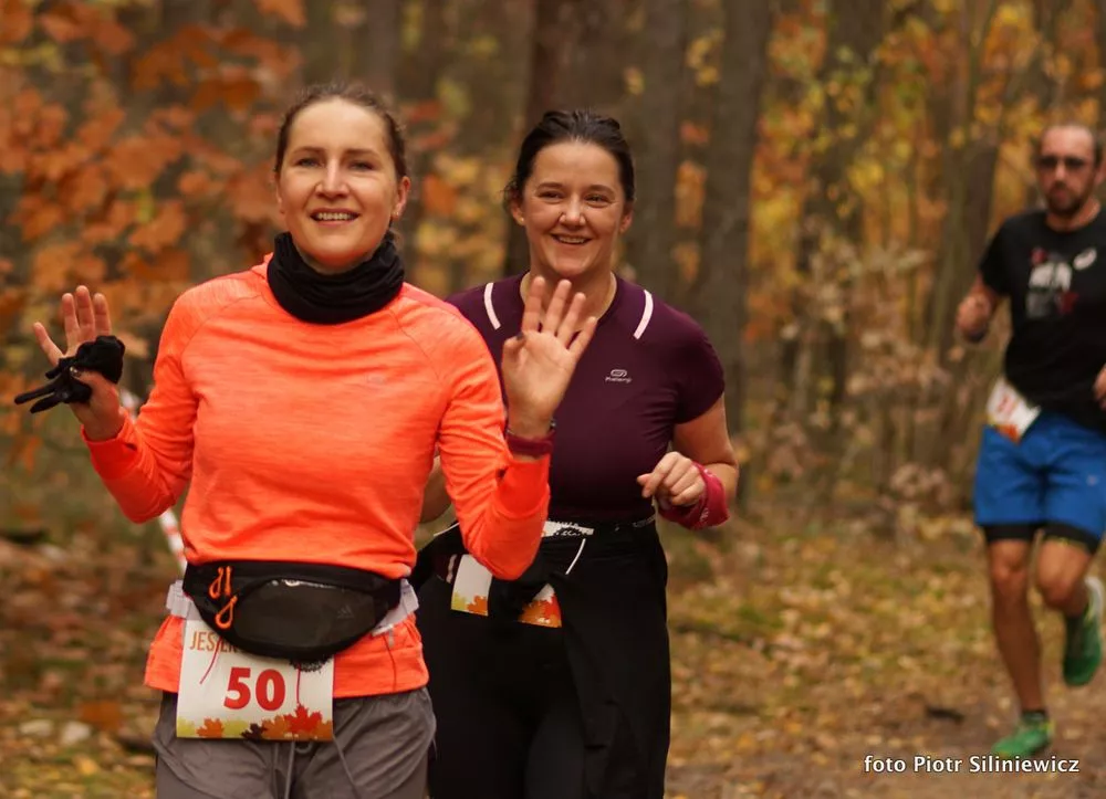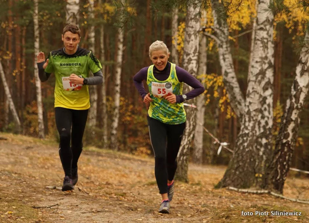 Choć prognozy pogody na sobotę straszyły deszczem i silnym wiatrem, w lesie na wydmach Mazowieckiego Parku Krajobrazowego panowała przepiękna Złota Polska Jesień. Było sucho, bezwietrznie i cieplutko, dzięki czemu wielu biegaczy mogło pozwolić sobie na start w krótkich spodniach i rękawku.
