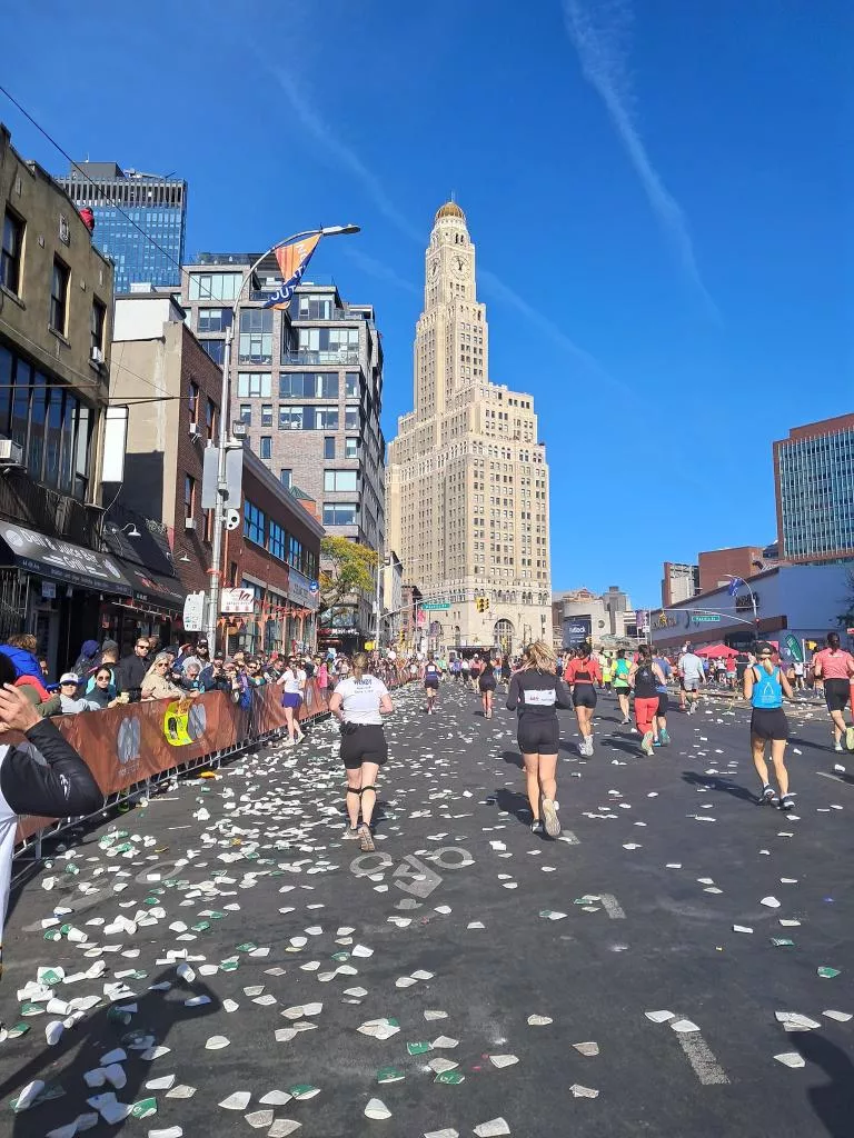 Wydawałoby się, że w momencie przekroczenia mety, otrzymania medalu i powrotu do hotelu, kończą się emocje związane z nowojorskim maratonem. A tu niespodzianka, której w Polsce, na próżno szukać. Następnego dnia przy śniadaniu zauważam ludzi z medalami na szyjach. Zakładam więc go i ja i ruszam w miasto. Jestem w szoku z powodu reakcji mieszkańców na widok maratończyków. Jestem bohaterem!! Jak Batman! Albo Spider-Man! Co rusz zbieram gratulacje, ludzie się kłaniają, uśmiechają, klepią z uznaniem po ramionach. Zewsząd słyszę okrzyki „congratulations”! Rozpiera mnie duma i wielkie szczęście, że się udało, że dotarłam tu, że dałam radę. Bezcenne chwile! Dziękuję Ci za nie Nowy Jorku!