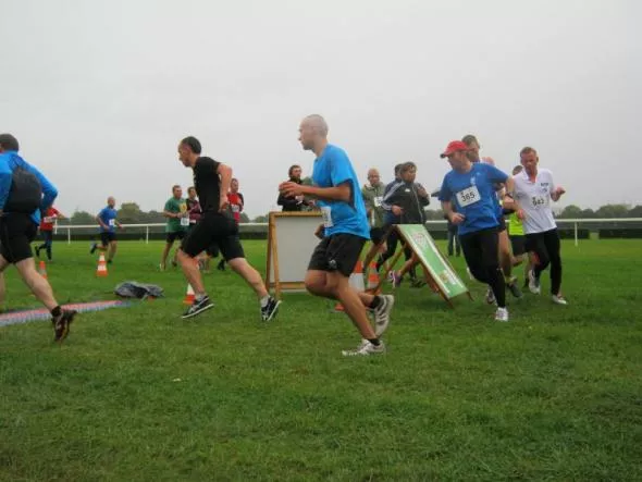 Jak na złość jednak podczas biegu, deszcz przestał padać albo był mniejszy (ciężko mi określić bo byłem zupełnie mokry). Pod butami z daleka słychać było chlupanie. Co do startu, to dawno nie widziałem tak szerokiego zrywu ławą. Od początku wyłoniła się czołówka, w której utrzymywał się ubiegłoroczny zwycięzca Mateusz Baran, Marek Jendrych i Rafał Rusiniak. Jak to na Torze Wyścigów Konnych zawodnicy pokazali co to galop i cwał. Sprawy jednak się skompilowały na nawrocie. Zawodnicy nie wiedzieli, jak wykonać poprawnie nawrót, ktoś pobiegł w prawo, ktoś w lewo? zrobiło się trochę chaosu. Sędziowie od razu zareagowali i wskazali właściwy kierunek. Mimo że stały pachołki i droga była dobrze oznaczona, to kolejni zawodnicy też chcieli pobiec w złą stronę, więc sędziowie musieli stanąć na trasie i jak stewardessy wskazywać drogę. Po pewnym czasie zawodnicy już złapali trop. Całe zamieszanie wykorzystał Artur Jabłoński, który nie oddał prowadzenia już do mety mimo ataku ze strony Jendrycha na ostatnich metrach. Zwycięzca ustanowił rekord imprezy 0:15:34. Wśród kobiet najlepsza okazała się Joanna Cibicka, która ?o włos? wyprzedziła Patrycję Berezowską.