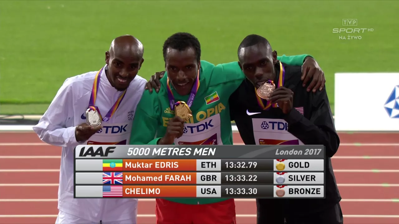 Muktar Edris przerwał niesamowitą passę Faraha rozpoczętą na MŚ w Daegu (2011), znaczoną wyłącznie złotymi krążkami MŚ czy Igrzysk Olimpijskich (niepokonany od Londynu 2012)