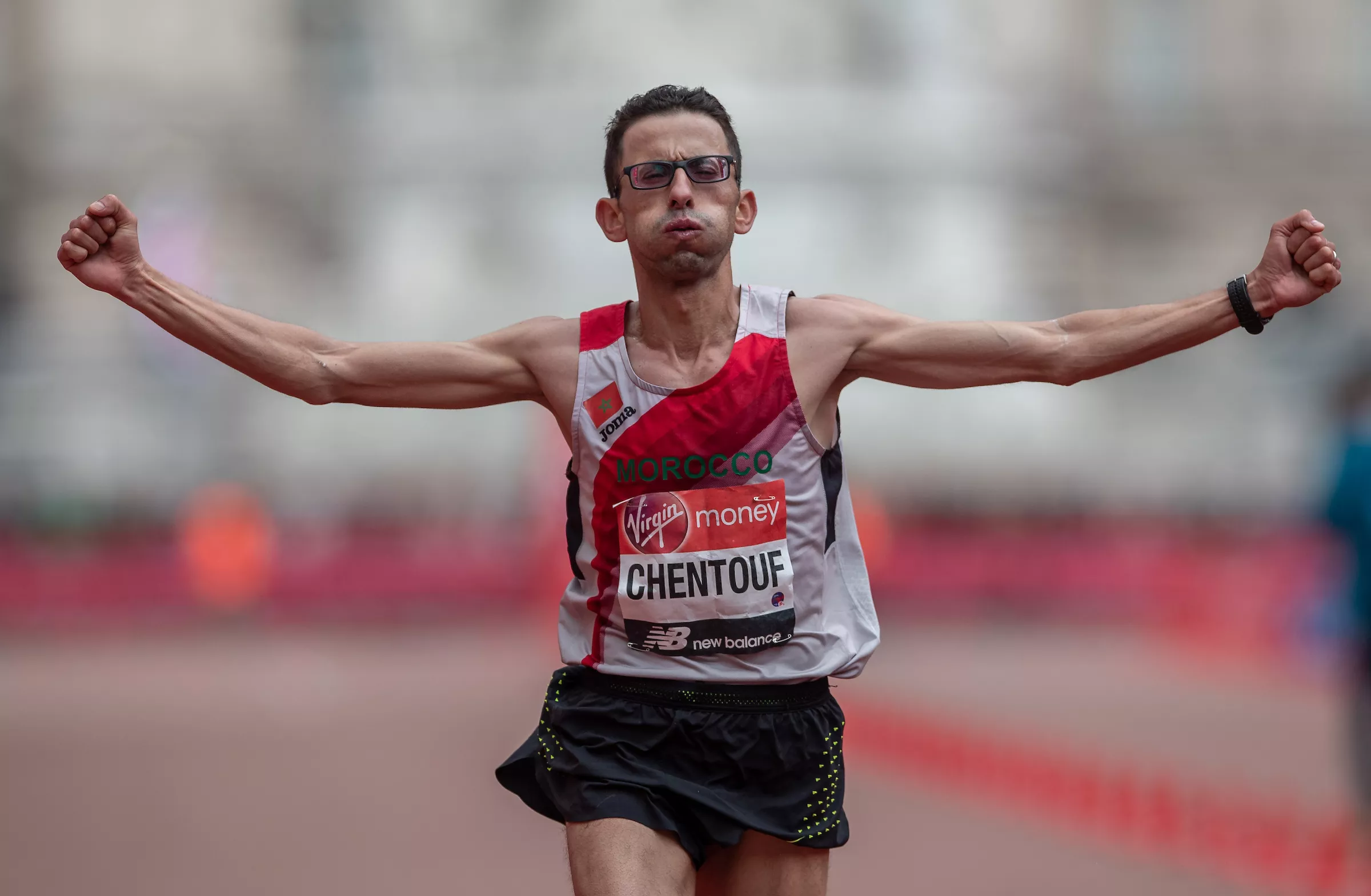 Mistrzowska rywalizacja zawodników niewidomych i niedowidzących została zdominowana przez El Amina Chentoufa. Marokańczyk prowadził od startu do mety, której linię przekroczył z czasem 2:21:23.