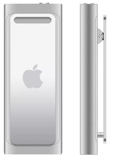 To jeden z najbardziej kontrowersyjnych ze wszystkich muzycznych wynalazków firmy spod znaku jabłuszka. Model ma wielkość spinki do krawata i bardziej przypomina pilota niż samodzielny odtwarzacz. Do tego posiada wyłącznie jeden przełącznik i gniado słuchawek. Producent najwyraźniej doszedł do wniosku, że muzyka ma oczyszczać umysł człowieka i towarzyszyć mu w aktualnie wykonywanej czynności, np. bieganiu, a nie angażować jego szare komórki do kolejnego działania, a ciało do zbędnych ruchów. 4-gigabajtowy dysk urządzenia ładujemy muzyką poprzez program iTunes, co trwa ok. 20 minut.