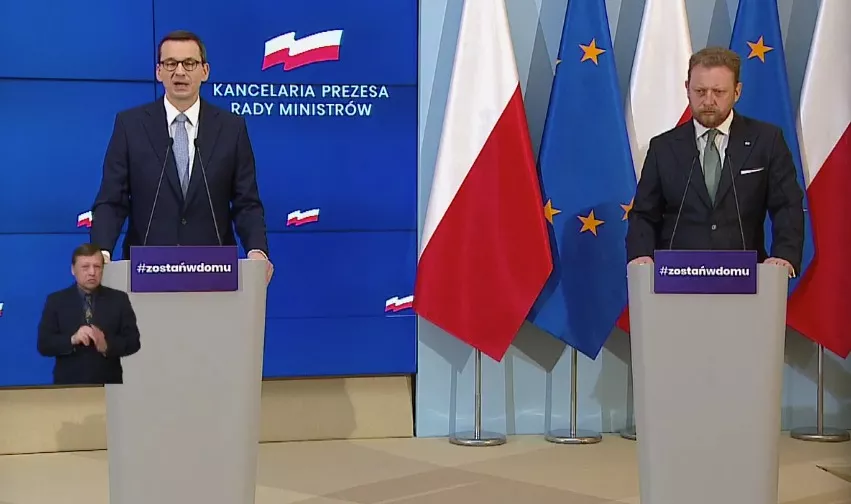 Premier Mateusz Morawiecki i Minister Zdrowia Łukasz Szumowski ogłosili nowe obostrzenia w przemieszczaniu się mieszkańców Polski, związane z minimalizacją liczby zarażonych koronawirusem.
