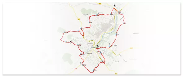 Można ją śmiało nazwać Tour de Gorlice, prowadzi bowiem wokół malowniczego miasta nad rzeką Ropą. Początek i koniec trasy znajduje się przy kompleksie obiektów sportowych na ulicy Sienkiewicza. Dalej trasa wznosi się przez dzielnicę Sokół i poprzez las Rozbój, przysiółki Krzyska i Urwisko prowadzi do Kobylanki (gorzelnia). Dalej przez most na Ropie, w pobliżu dawnego pałacu Skrzyńskich, ulicą Graniczną prowadzi do Stróżówki. Tu z wzniesienia Kogutek zbiegamy w dół do budynku szkoły. Stamtąd czeka nas mozolny podbieg do granicy z Bystrą i dalej na gorlicką Golgotę. Tutaj dłuższy wysiłek zrekompensuje piękna panorama miasta. Zbiegamy na dół ul. Zamkową i Lipową (skansen naftowy!), aby dotrzeć na Blich. Tu skręcamy w prawo i poprzez kładkę na rz. Ropie docieramy do Ropicy Polskiej. Przy drodze głównej skręcamy w prawo, a prze kościołem w lewo. Droga znów znosi się i skręca lekko w lewo, łącząc się z ulicą Władysława Łokietka. Aby zamknąć trasę naszego Touru skręcamy w prawo ul. Węgierską, następnie Tęczową i Kochanowskiego (obok budynków szpitala) docieramy do końca trasy na ul. Sienkiewicza.