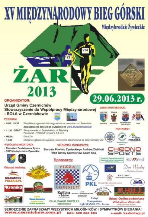 Ponad 400 osób zapisało się już na XV Międzynarodowego Biegu Górskiego Żar 2013. Kolejne będą to mogły zrobić w dniu zawodów. Impreza odbędzie się już jutro w Międzybrodziu Żywieckim w gminie Czernichów.