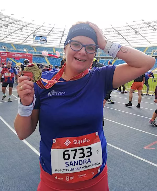Z daleka widziałam Konrada, który czekał zgodnie z umową żeby zrobić mi zdjęcie na mecie. Udało się pokonałam swój lęk i swoją słabość. Udało się ustanowić nową życiówkę na trasie półmaratonu – przyspieszyć o ponad 8 minut!