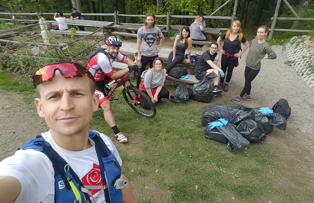 – Nosiłem się z takim zamiarem już od jakiegoś czasu – powiedział nam Piotr, zainspirowany wcześniejszymi akcjami w różnych częściach kraju i ruchem Global UnTrash - Clean Future (inicjatorem pomysłu jest Mateusz Tylek). Jak na „górala” z Krakowa przystało, zna doskonale okolice Beskidu Makowskiego i Wyspowego. – Wielokrotnie, biegając na trasie z Myślenic do Schroniska PTTK Na Kudłaczach, nie mogłem nie zauważyć niepokojącej ilości śmieci na szlaku! – opowiada Piotr, któremu z pomocą koleżanek i kolegów z polskiego oddziału Euroclear Banku SA/NV, w którym pracuje, udało się w znacznym stopniu oczyścić teren.