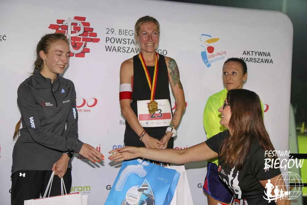 Dla zwyciężczyni rywalizacji kobiet, Ewy Jagielskiej, czas nie był najważniejszy. - Mój dzisiejszy wynik jest daleki od moich możliwości. Temperatura jak na bieganie była dosyć wysoka. Jednak dla mnie najważniejsze jest to, że właśnie w taki sposób, na biegowo, mogłam uczcić pamięć o Powstaniu i oddać hołd sportowcom – mówiła na mecie wielokrotna medalistka MP w biegach ulicznych, która cały dystans przebiegła spokojnym tempem. Linię mety przekroczyła z wynikiem 16:52.