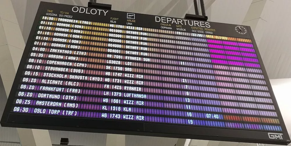 Przy odbiorze pakietów następowała wizyta w check-in’ie, przejście przez bramki z kontrolą karty pokładowej, kontrola bezpieczeństwa, wreszcie oczekiwanie na terminalu i boarding.