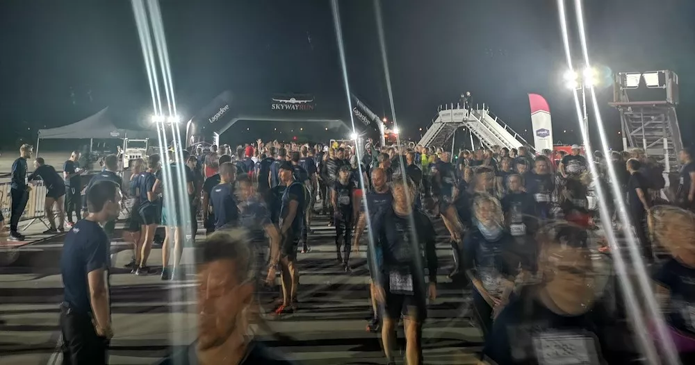 Bieg po pasie startowym Portu Lotniczego w Gdańsku zaplanowany był na godzinę pierwszą w nocy, z racji na pracę lotniska. Zakładam że dość ciężko biegałoby się między startującymi i lądującymi samolotami. Obowiązywały też pełne procedury bezpieczeństwa.