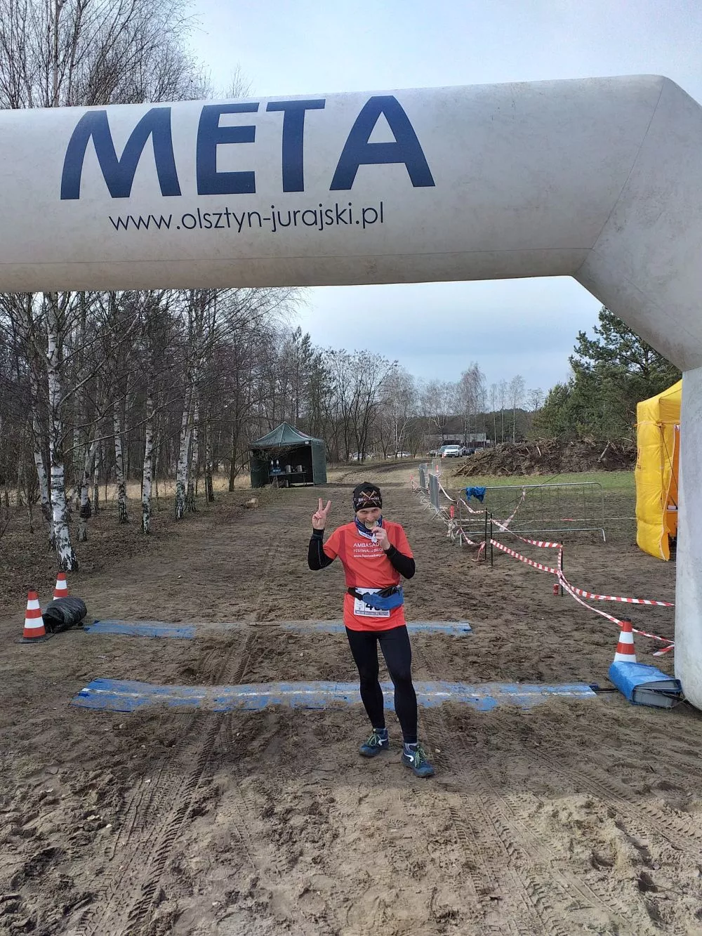 Z biura w hali sportowej, pojechaliśmy na start. Mieliśmy trochę czasu na rozgrzewkę, przemyślenia odnośnie ubrań (rano było chłodno) i zrobienie kilku zdjęć. Okazało się, że jest tam już sporo zawodników, mimo że trasa miała być wymagająca i moje obawy na chwilę prysły. Bałem, że się znajdę wśród „elity”.